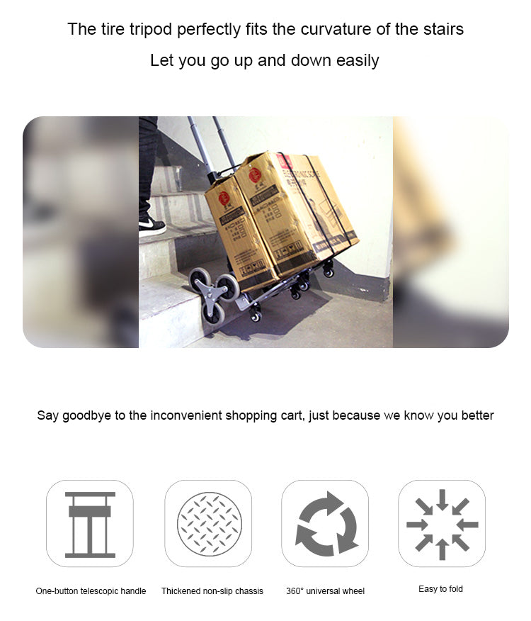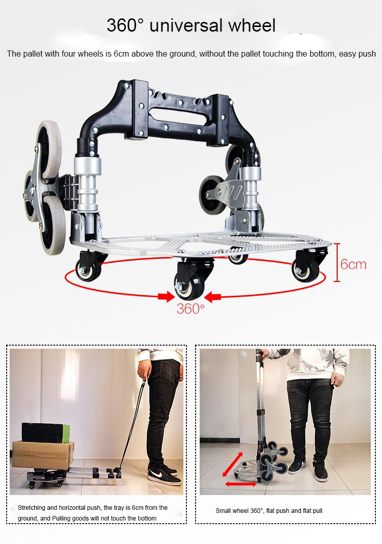 Stair Climbing Trolley Cart has special three-wheel design for climbing the stairs. In order to increase the strength of cart,we specifically design the pulling handle to be tight.