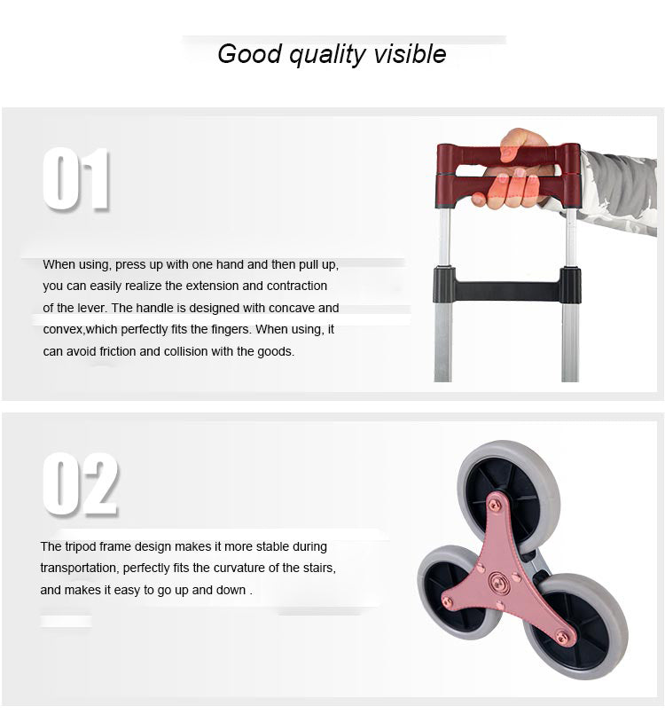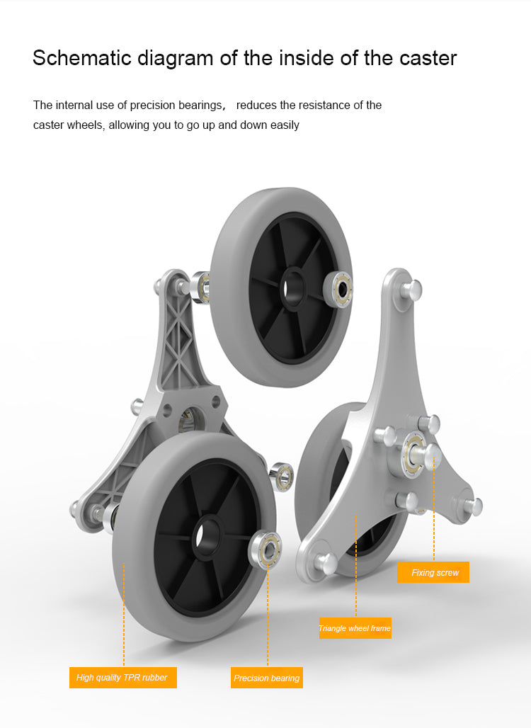 [Three-Wheels]: Aluminum alloy climbing triangle wheel is solid and durable, and our stair climbing cart can easily climb stairs.