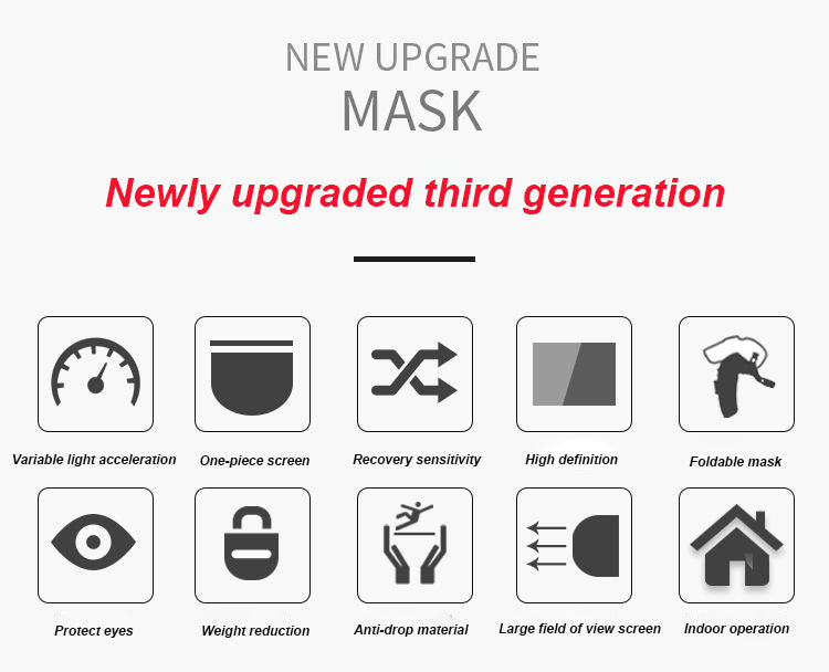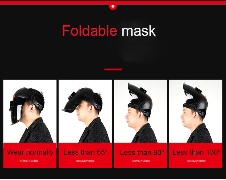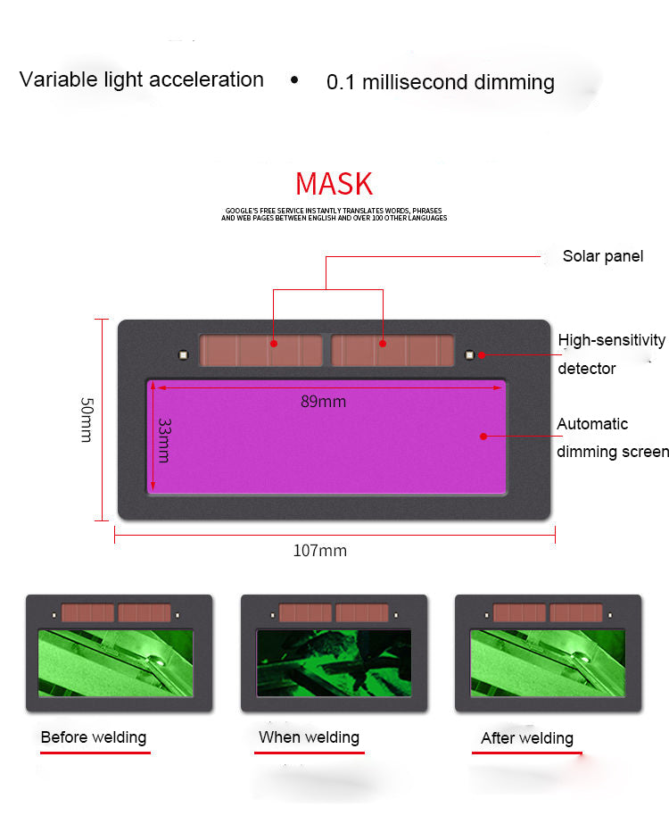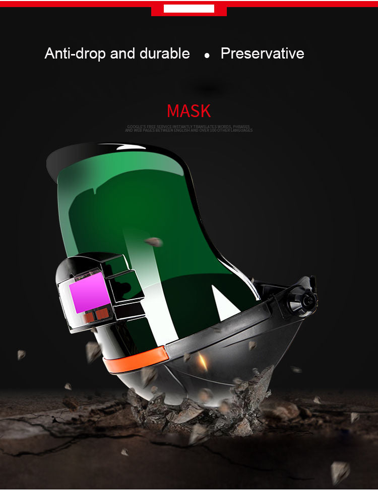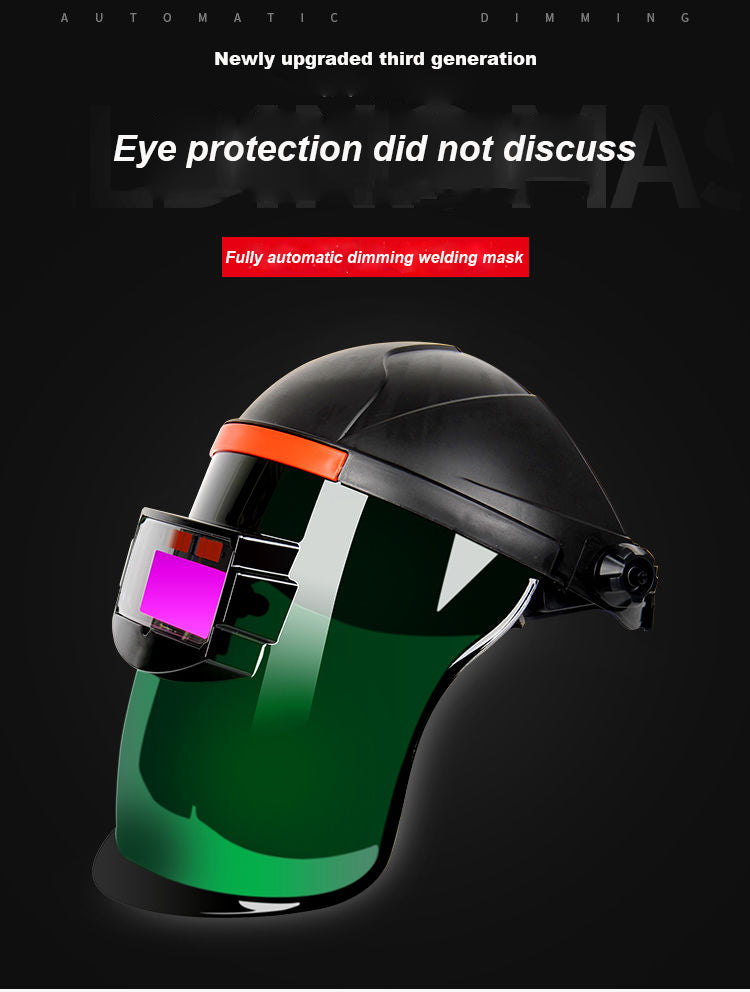 This mask is worn during electric welding. It will be automatically sensitized after being put on,so that the welding process is not glare and does not hurt the eyes.