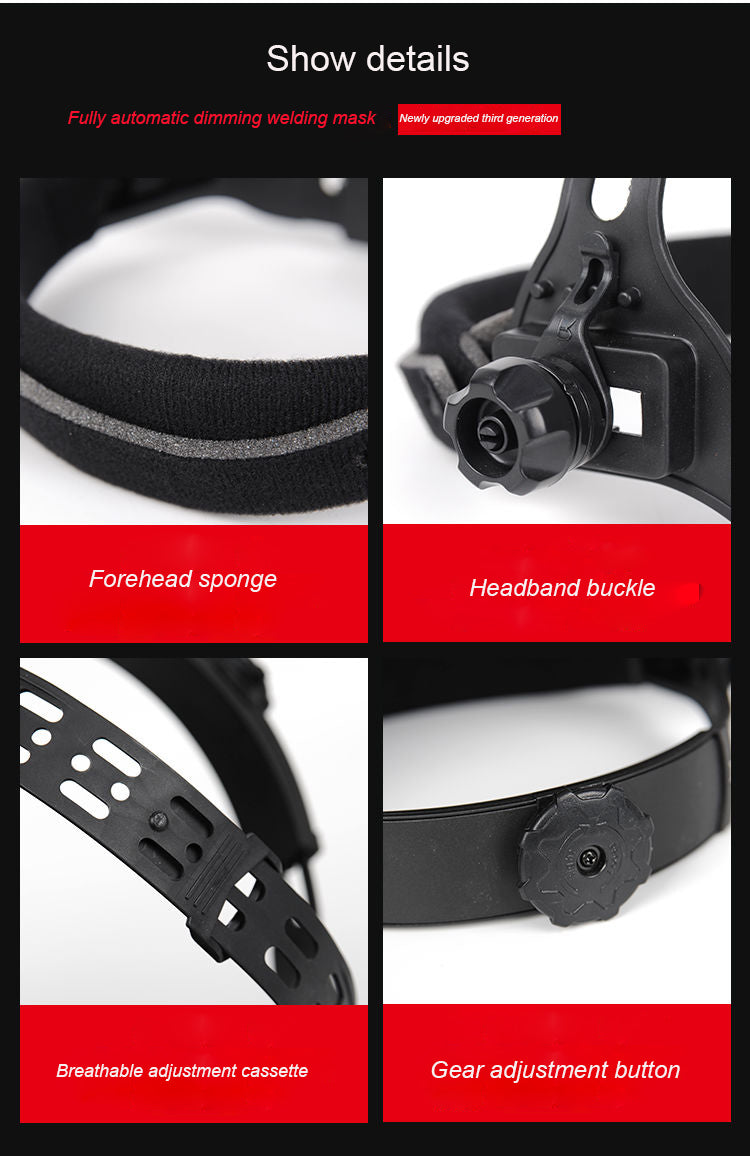 Headband and mask are freely adjustable.It can also adjust the distance between the mask and the face,the darkness,the sensitivity,and the arc delay can be adjusted to suit different working environments and welding requirements.