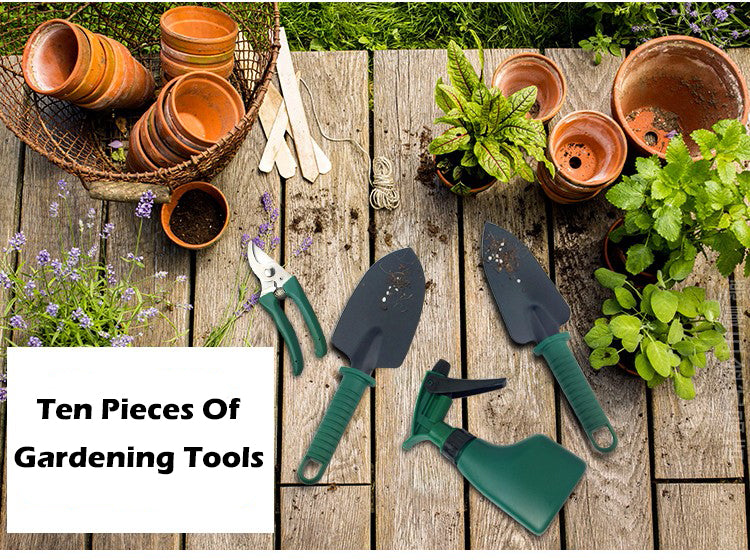 【MULTIFUNCTIONAL】 -- 10-Piece garden tool kit includes pruning, shovel, weeding knife, watering can, Rakes and so on. You an use these garden tools to dig, weeding, loosening soil, watering, pruning, transplanting to meet all your requirements for gardening.
