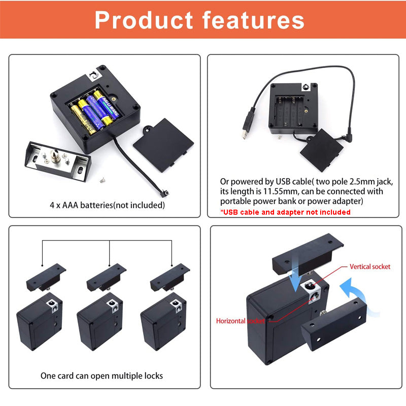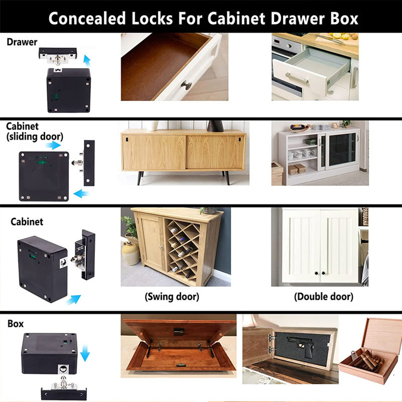 【Hidden Sturdy Lock】No need to drill holes, No damage to your cabinet. Power Supply: 4*AAA Batteries(Not Included !!!)or USB powered.
