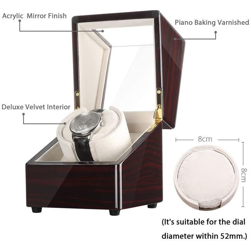 【Deluxe Piano Baking Varnished】with acrylic organic glass window, high-gloss lacquered finish, this 100% handmade wooden box is an exquisite decoration, show your elegant taste. 80 mm diameter pillow can hold all watch sizes.