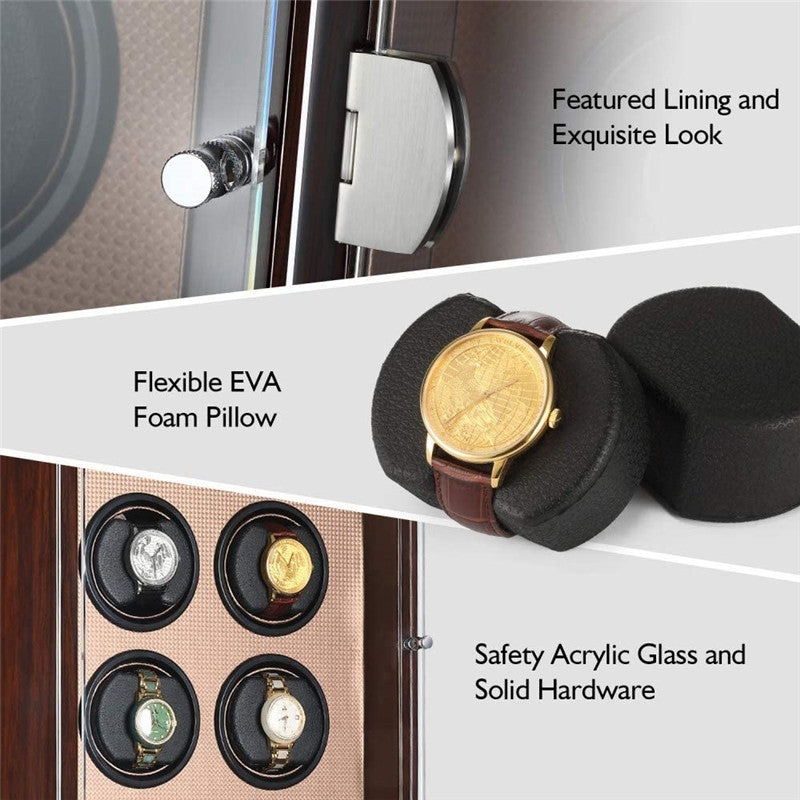 With incredibly beautiful and functional, you'll definitely be intoxicated with CHIYODA watch winder. It will not only keep all your watches ready to wear and save your time to reset the time and date when not worn in a long period, but will also keep your precious timepieces organized, nice, and easy to find with this smart automatic watch winder. Stylish, Functional & Outstanding Design with Patent High-glossy and stunning piano baking varnish combine with a full see-through window to display your precious watch nicely and keep it from dust. This classic and elegant watch winder will be the best choice for people who really care about their watch and want to keep them beautiful, new and functional.