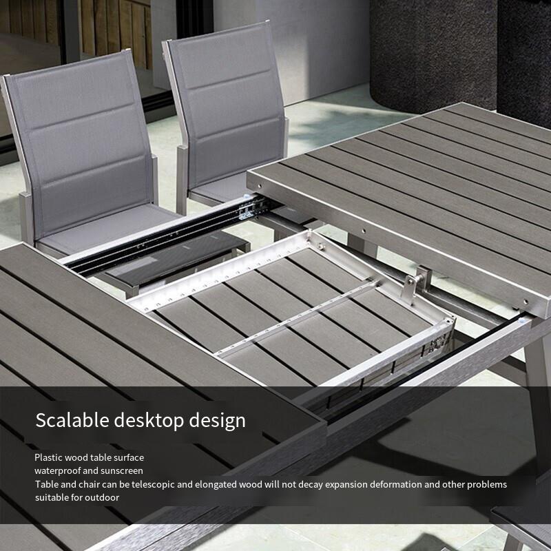 Outdoor Tables And Chairs Courtyard Telescopic Table Villa Garden Plastic Wood Modern Simple Leisure Combination Terrace Dining Table Diatelin Armless Aluminum Alloy Chair 2