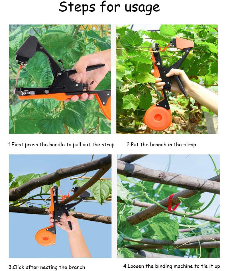 【Time saver】The plant tie machine can accomplish 3-4 times the work of hand-tying alone. It is very useful for clipping climbing roses, grape vines onto wires or tomatoes onto support canes.