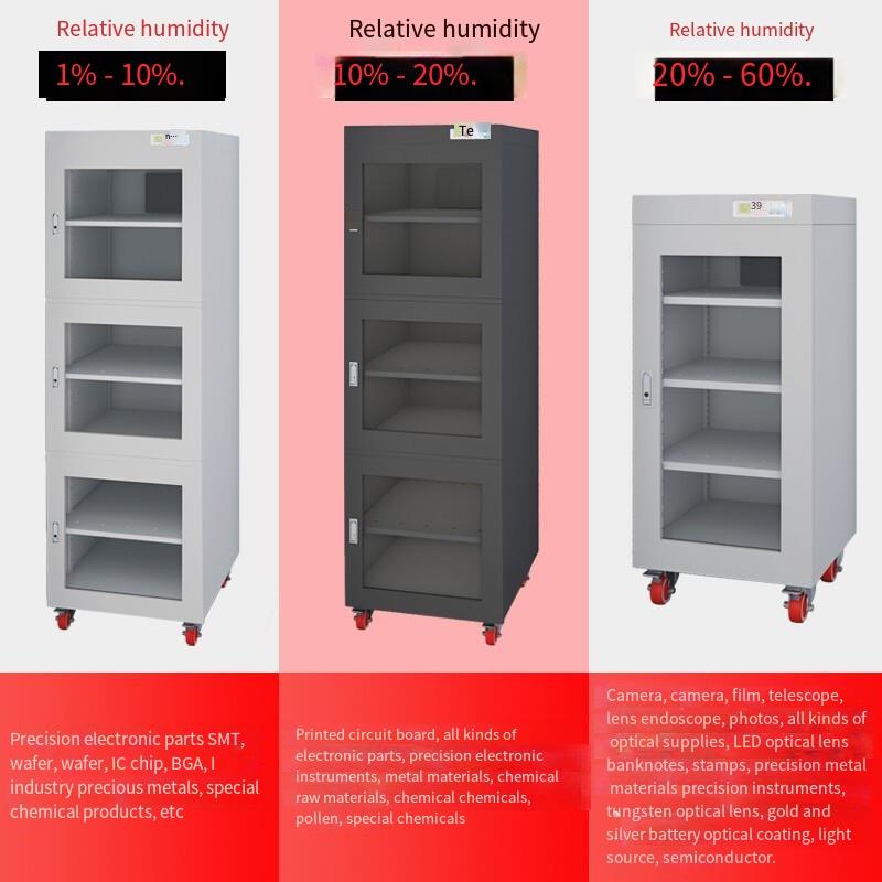 The industrial moisture-proof cabinet adopts dual core dehumidification technology to achieve lasting dryness and create a moisture-proof safe house to effectively and safely store precision electronic parts SMT, wafers, integrated circuit chips, BGA, industrial precious metals, special chemicals, etc.
