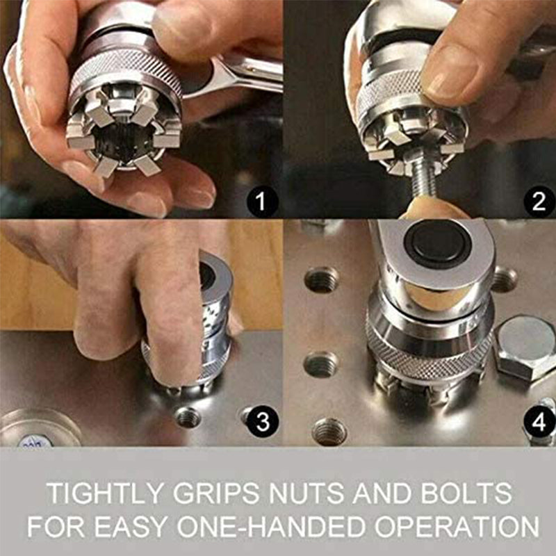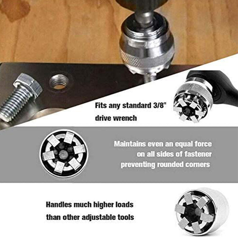 1.Replaces over 30 sockets from 3/8 inch to 3/4 inch and 10 to 19 mm.Grips and removes damaged, rounded-off and rusty nuts and bolts with ease.