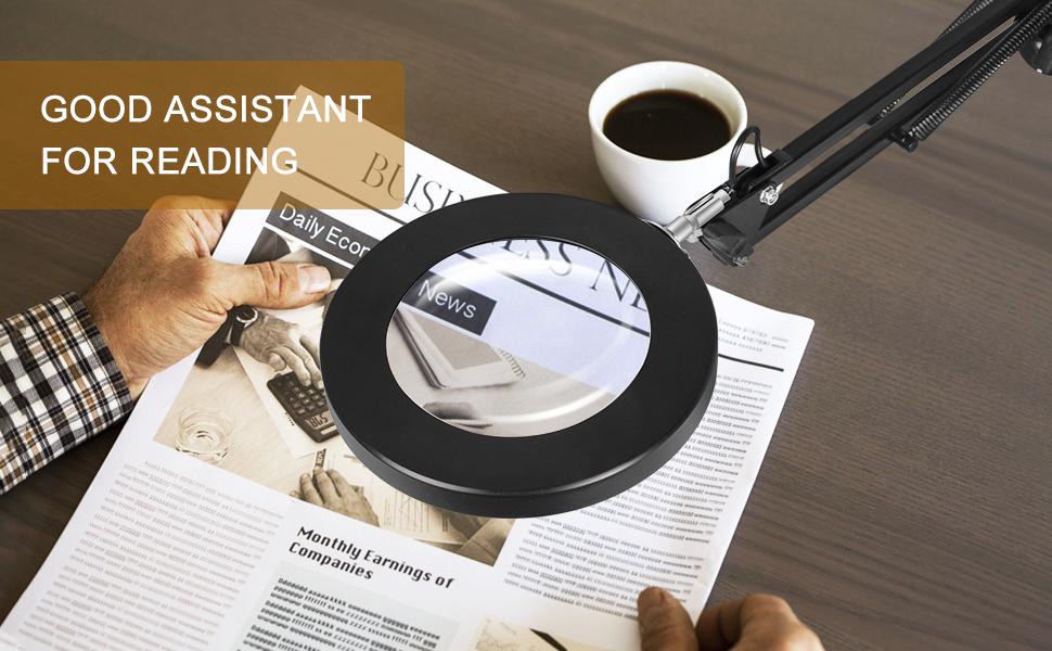 Reduce Eye Strain: This magnifier lamp comes with a 4.13″ real glass lens and provides you a clear view. It is designed for people who need continuous close focus work or anyone who needs visual aids to reduce eye fatigue. Optimal for viewing very fine details in books, newspapers, magazines, photographs, maps, electronics, miniatures, jewelry, pill bottles, medications, and crafts of all kinds.