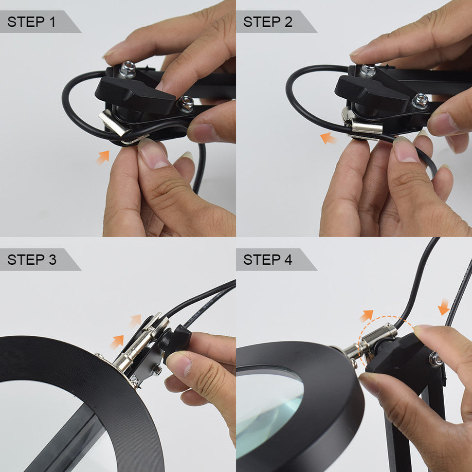 Easy to Install: The sturdy metal clip can firmly fix the magnifying glass lamp so that it will not tip over. The clip is adjustable, and the maximum opening distance is 2 inches. It can be easy mounted on any flat surface with exposed edges, such as a desk, workbench, shelf, or table.