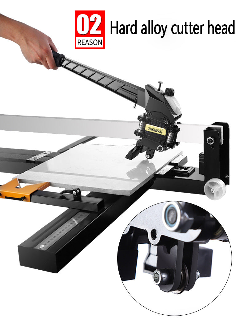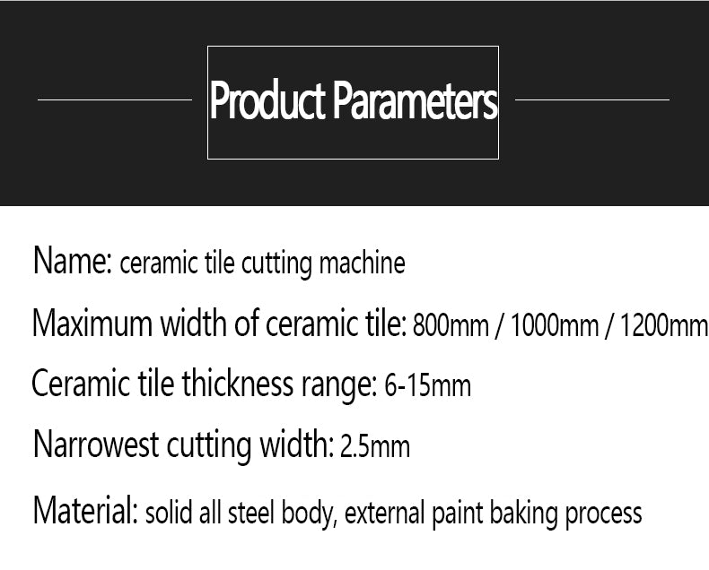 This manual ceramic tile cutting machine has laser infrared positioning, which can effectively improve the cutting accuracy. Tough alloy cutter head, strong and durable. It has a self-service refueling system to effectively prolong its service life. Widen the base to make the cutting work more stable and simple. It is suitable for stone cutting, including ordinary ceramic tile, polished brick, ceramic tile, etc.