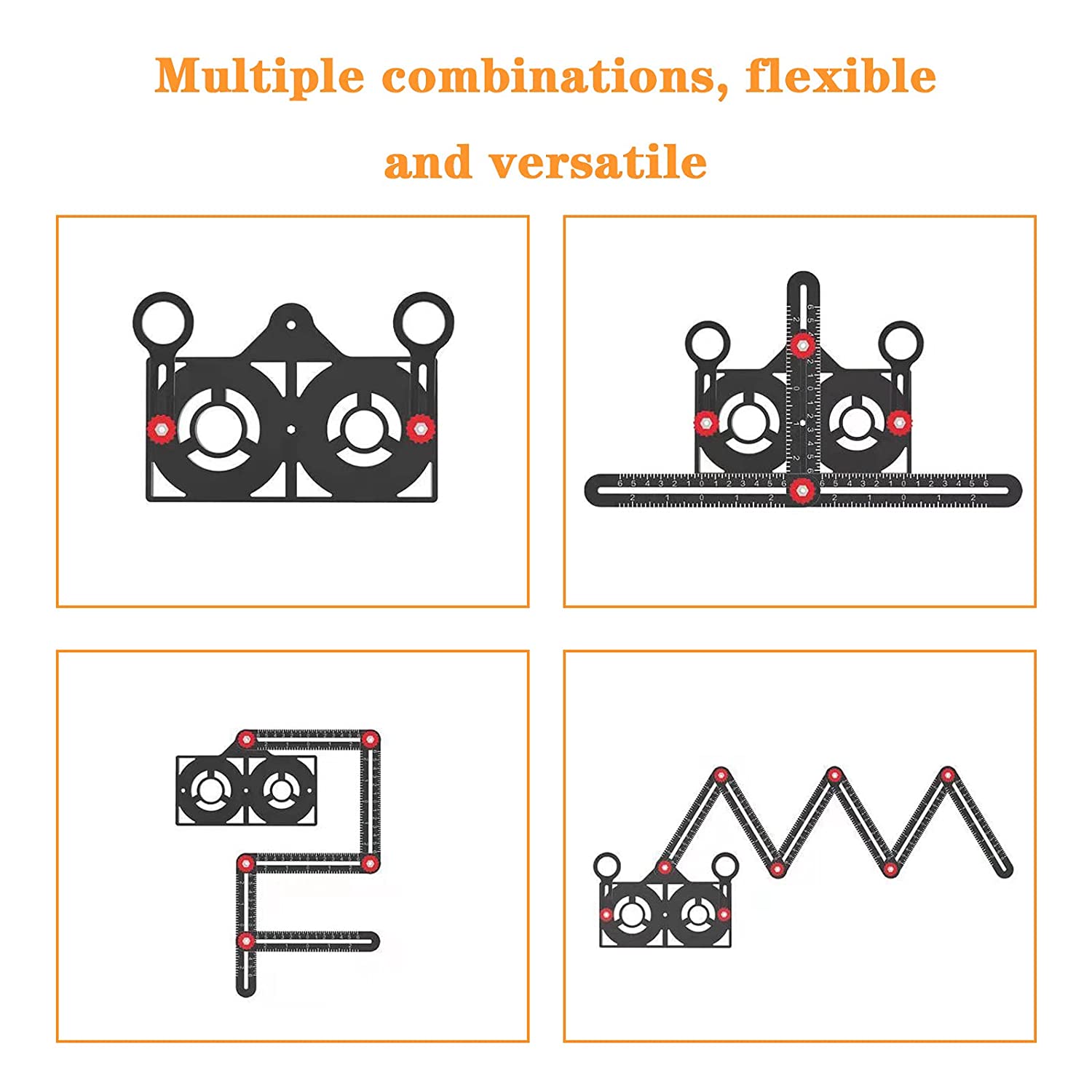 UPGRADED ANGLE MEASURING RULER: This angle ruler has a 12-piece ruler with metal knobs and a drilling locator, you can adjust the 12 metal knobs to create the desired shape accurately and then find the position to drill the correct hole. With folding 12 sides, users can easily create and measure special angles or shapes by the angle finder tool to improve work efficiency.